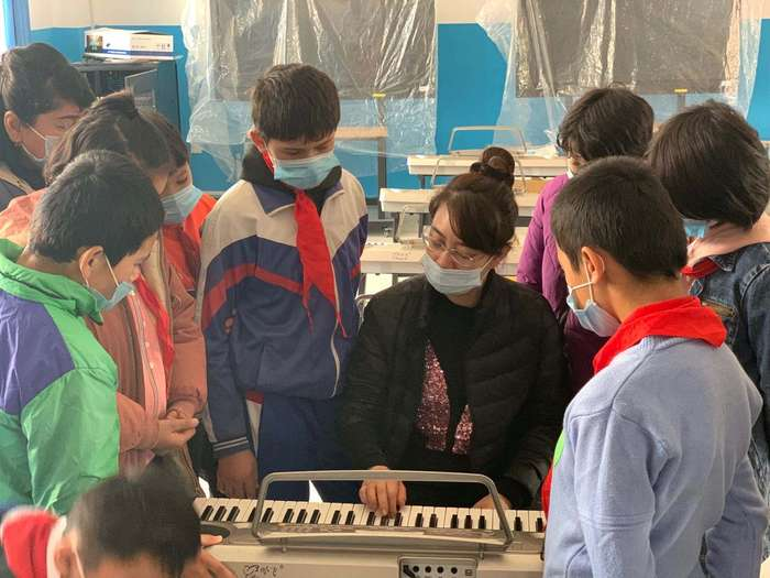 我院教师教学生弹奏电子琴