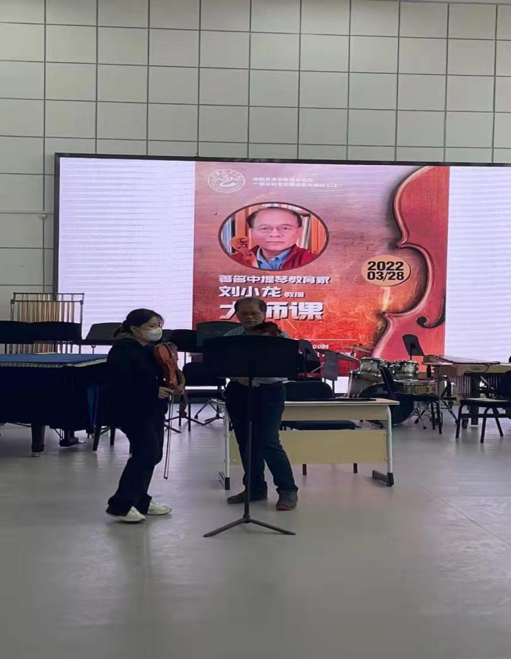 2022年3月28日下午17:00,音乐学院特邀请著名中提琴演奏家、教育家、原中央音乐学院教授刘小龙老师为管弦专业师生上了一堂别样的大师课。刘小龙教授长期担任中央音乐学院附中小提琴和中提琴专业教师,为我国培养了大量音乐艺术人才,在大师课中,刘教授对学生的音乐基本素养和表演实践能力提出了细致要求,并通过深入浅出的教学方法对表演专业的学习规律进行了诠释,音乐学院师生表示受益匪浅。