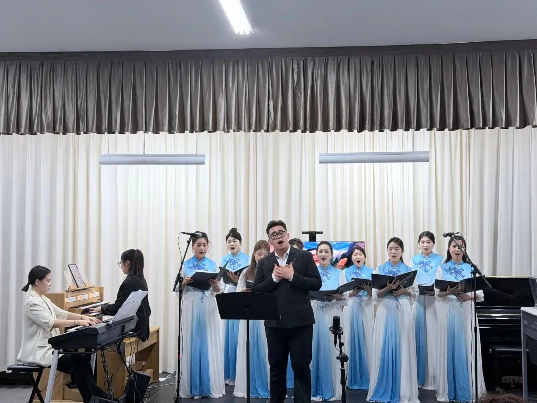 音乐会尾声,学生改编演奏、演唱《黑眼睛》《无锡景》《紫竹调》三首民歌作品,哈萨克民歌与江南小调在管风琴、电子管风琴与人声合唱中共谱草原韵律。在本次实践活动中,学生完成了从“演奏者”到“再创作者”的身份转变,主动探寻民歌背后承载的爱国情怀与集体记忆,深化了对中华文化多元一体格局的认同。