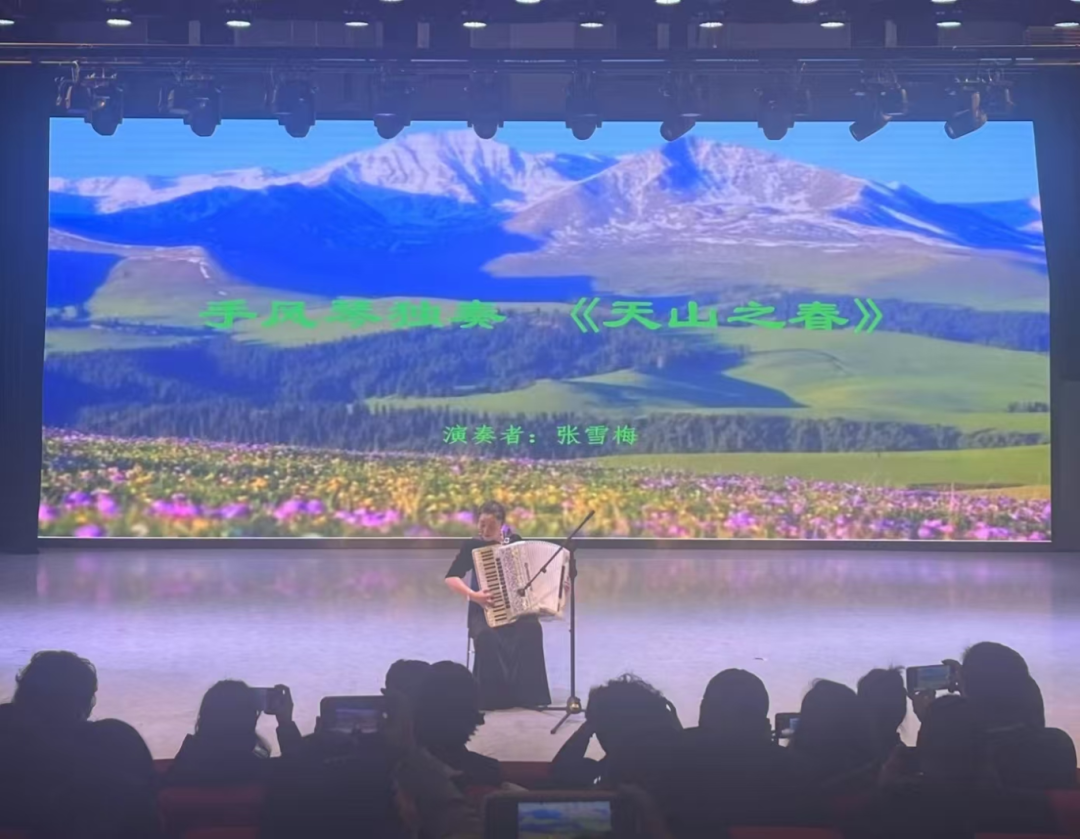 音乐教育系教师党支部书记张雪梅演奏了上世纪60年代的经典作品《天山之春》,激励在场师生珍惜当下、热爱生活。