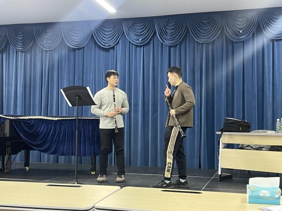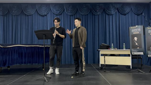 专家课现场气氛热烈,陈老师讲授了舒曼《幻想曲》Op.73、约翰斯塔米兹协奏曲、布格缪勒《降E大调单簧管与钢琴二重奏》等十首经典作品。从演奏技术重难点入手,抽丝剥茧般地对作品旋律特点、强弱控制、节奏掌控、身体放松程度、呼吸控制与音乐表现形式等方面为学生进行了详尽且生动的讲解和示范。
