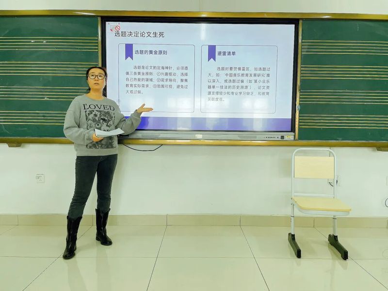 王晶老师围绕《音乐教育本科毕业论文的实践与思考》,系统梳理论文写作全流程:指出选题需遵循 “兴趣驱动、需求导向、范围可控” 原则,文献综述应融合经典理论与前沿成果并注重批判性整合;内容构建需体现 “音乐 + 教育” 双属性,结合课例、学生反馈融入多样化教学设计;同时详解格式规范、语言表达等要点,推荐 “三遍检查法”“同学交叉检查” 保障质量,总结高质量论文需具备 “理论深度、实践温度、规范程度”。