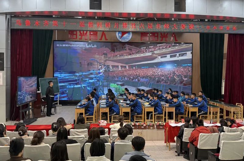 2025 年 10 月 23 日,乌鲁木齐市第十一届教科研月暨第六届中小学音乐名师大赛课在乌鲁木齐市第七中学正式拉开帷幕。作为乌鲁木齐市中小学音乐学科两年一届的重要赛事,本次活动汇聚了全市优秀的中小学音乐教师与教研骨干,通过搭建音乐教学经验交流平台,助力教师提升课堂教学能力。