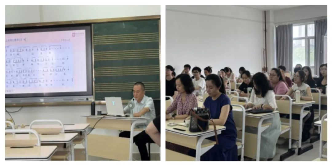 肖教授从创作背景、音乐风格、节奏节拍、调式特征等方面,对两首作品进行了全面分析。他以生动的语言和丰富的谱例,示范了如何准确记录传统音乐的旋律、节奏及装饰音,并特别强调了不同地域音乐风格的记谱差异。此外,肖教授还结合自身研究经验,分享了传统音乐记谱的前沿方法与学术思考,鼓励师生在学习和研究中保持探索精神,不断提升专业能力。