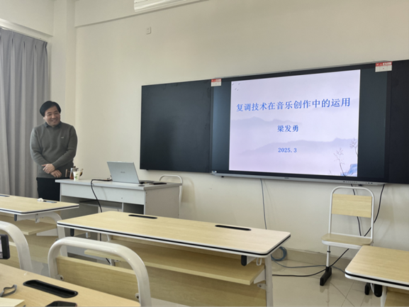310日,音乐学院邀请梁发勇教授作了题为《复调技术在音乐创作中的运用》的学术讲座。音乐学院领导班子、作曲专业师生到场聆听。