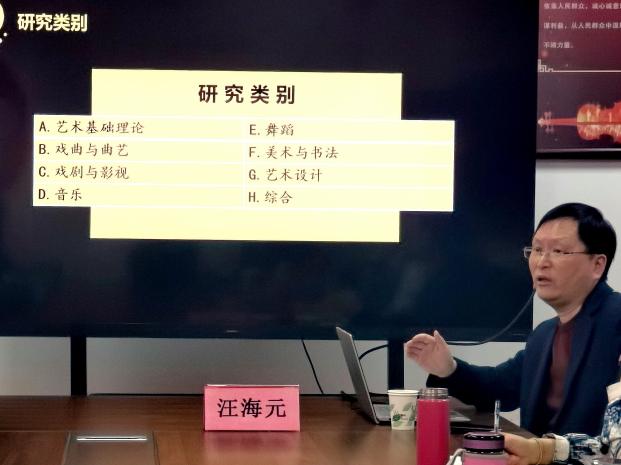 讲座上,汪海元教授详细梳理了近十年国家社会科学基金艺术学项目的立项情况,并结合自身经验,从项目选题、论证设计、研究方法、预期成果等方面,对国家社会科学基金艺术类项目申报进行了全面系统的讲解。同时,他结合实际案例,围绕申报流程、材料准备等环节,为在场教师传授了实用的申报要略,帮助大家明晰方向、少走弯路。