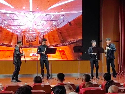 逐梦,携一缕春风,同赴时代的山海;聆听,奏一曲高歌,荡涤心灵的迷茫。新疆艺术学院的学生凝聚青春力量、展示青春风采,在舞台上尽情展示新时代大学生昂扬向上、砥砺奋进的良好精神风貌。乐器重奏《掀起你的盖头来》《半个月亮爬上来》、歌曲《一杯美酒》《思恋》体现新疆音乐的风格特色;歌曲《Flowers》《我在人民广场吃炸鸡》《爱之初体验》点燃现场气氛,展现青春风采;歌曲《我的太阳》《总有一天》、单簧管四重奏《鸿雁》《小夜曲》引起阵阵掌声,彰显新疆艺术学院学生的专业风采;音乐会的最后,由唐晓泉、魏偌菲、吴钰娟、杨柳钰等学生共同演唱的《我爱你中国》,饱含现实温度、彰显家国情怀。