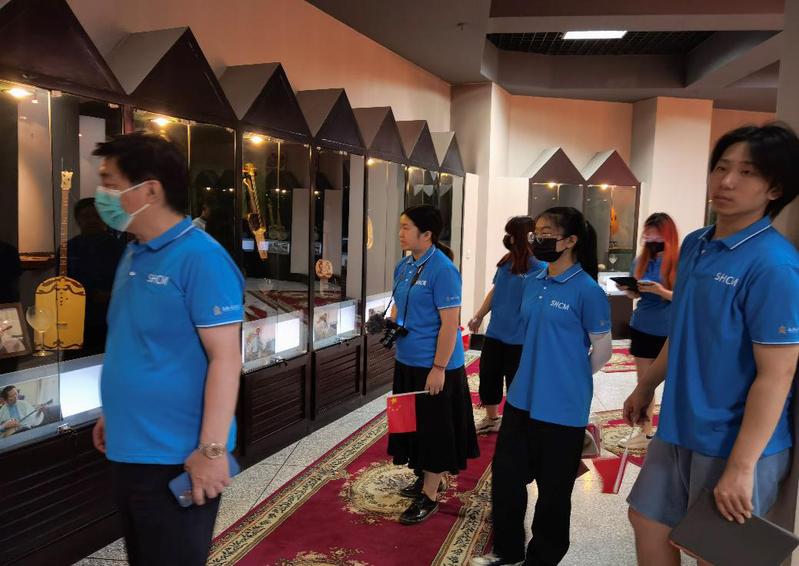 上海音乐学院来宾首先参观了学校“丝绸之路乐器陈列馆”,观赏了馆藏新疆各民族代表性乐器。