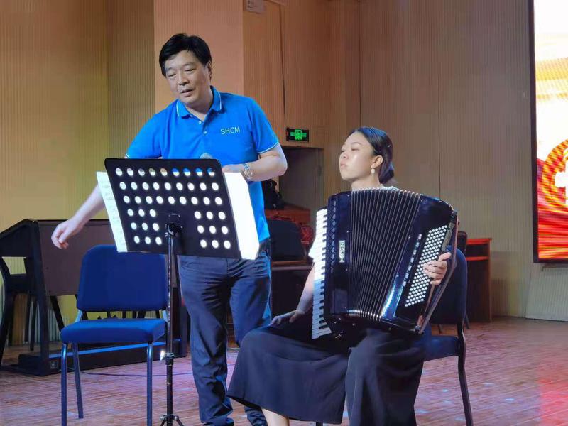 上海音乐学院青年教师朱政老师讲授上音音乐党课首批示范课程“忆手风琴红色往昔”,她将党史教育与手风琴音乐艺术相结合,为现场观众上了一堂别开生面的音乐思政课。