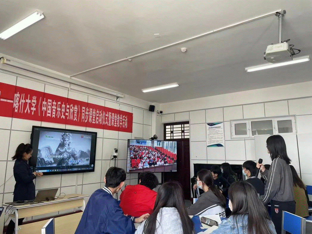 为进一步加强高校教学合作交流,深化信息化教学改革。新疆艺术学院---喀什大学《中国音乐史与欣赏》慕课西行第二次“同步课堂”2022425日上午12:05在音乐学院5A-10奥尔夫教学实训室顺利进行。